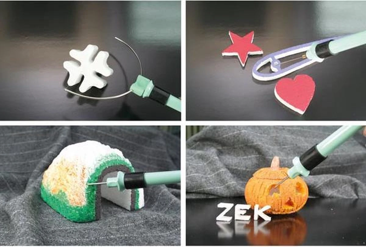 Piepschuimsnijder met 3 verschillende stiften: een gloeidraad, een graveerstift en een warm snijmes.DIt toestel heeft een zeer snelle opwarmtijd en is geschikt voor het snijden van alle types polystyreenschuim.