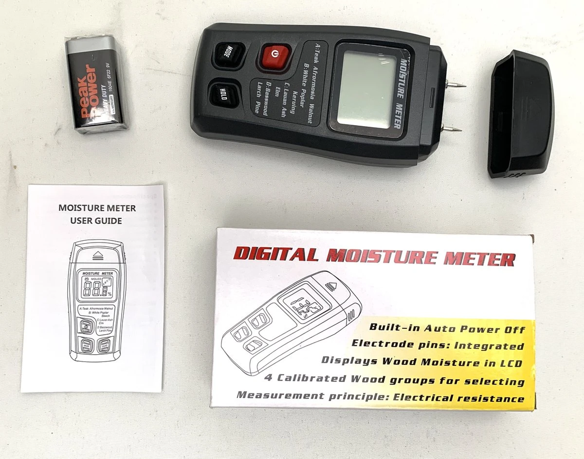 | Verpakkingsinhoud | 1 vochtmeter met batterij |