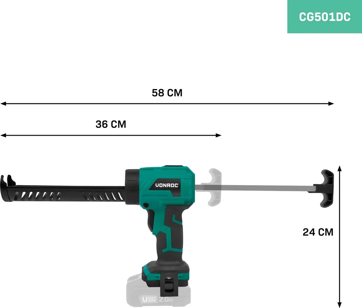 Dit kitpistool wordt geleverd zonder accu of oplader omdat het onderdeel is van het VONROC VPower 20V Platform. Je kunt de uitwisselbare 2.0Ah of 4.0Ah accu’s en oplader optioneel bijbestellen. Wanneer je de kitspuit wilt combineren met andere machines uit het VONROC VPower 20V Platform heb je aan één 20V accu met snellader genoeg! Kies alleen wat je nodig hebt en dat voor een scherpe prijs!