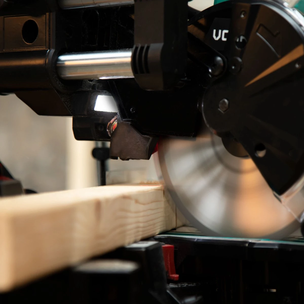 Ultra-compacte afkortzaag voor het zagen van hardhout, zachthout, spaanplaat en vezelplaat