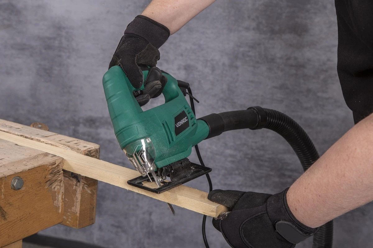 - Stofreductie – Sluit de decoupeerzaag gemakkelijk aan op een stofzuiger zodat je in een stofvrije omgeving kan werken