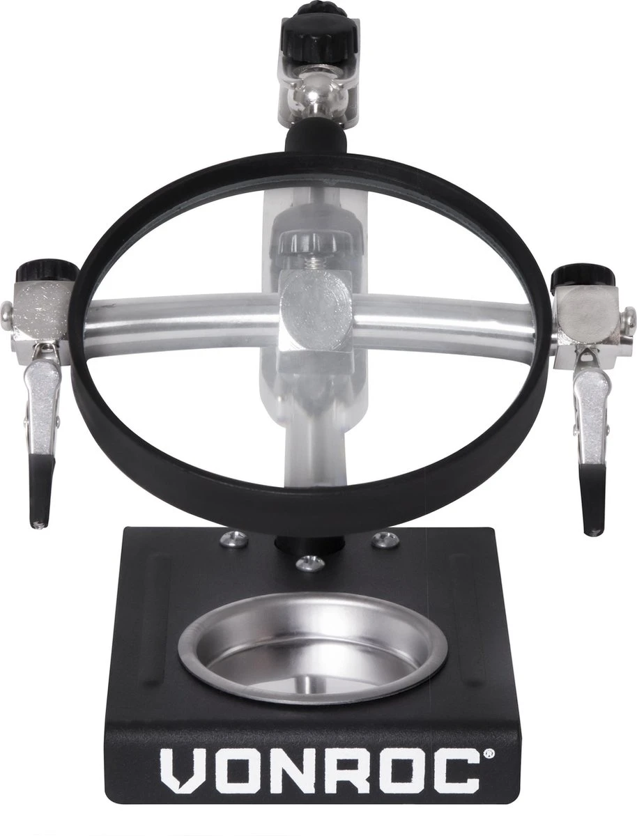 Deze derde hand van VONROC is de ideale hulp tijdens bijvoorbeeld soldeerwerkzaamheden. Met deze soldeerhulp klem je gemakkelijk voorwerpen vast tijdens monteer, soldeer- en verfwerkzaamheden. Deze helpende hand heeft een zware voet voor een goede stabiliteit, hierop is een RVS constructie gebouwd met een lens en krokodillenklemmen. De lens is gemaakt van echt glas en de krokodillenklemmen zijn ideaal voor het vasthouden van componenten, draden en kleine Pcb’s.