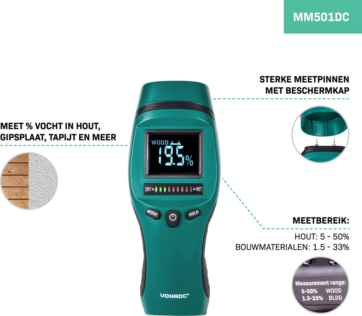 De belangrijkste voordelen van de VONROC vochtmeter:
