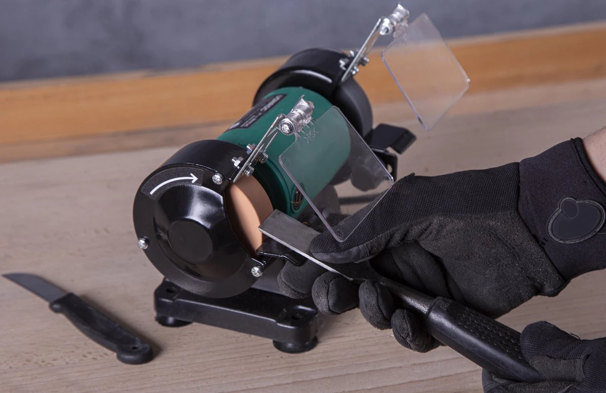 Deze allround werkbankslijper helpt je bij het uitvoeren van verschillende kleine slijp-, schuur-, polijst- en reinigingsklussen in huis, in de werkplaats of in de schuur. Zo kun je er bijvoorbeeld messen en beitels mee slijpen, maar ook houtbewerken en glas graveren.