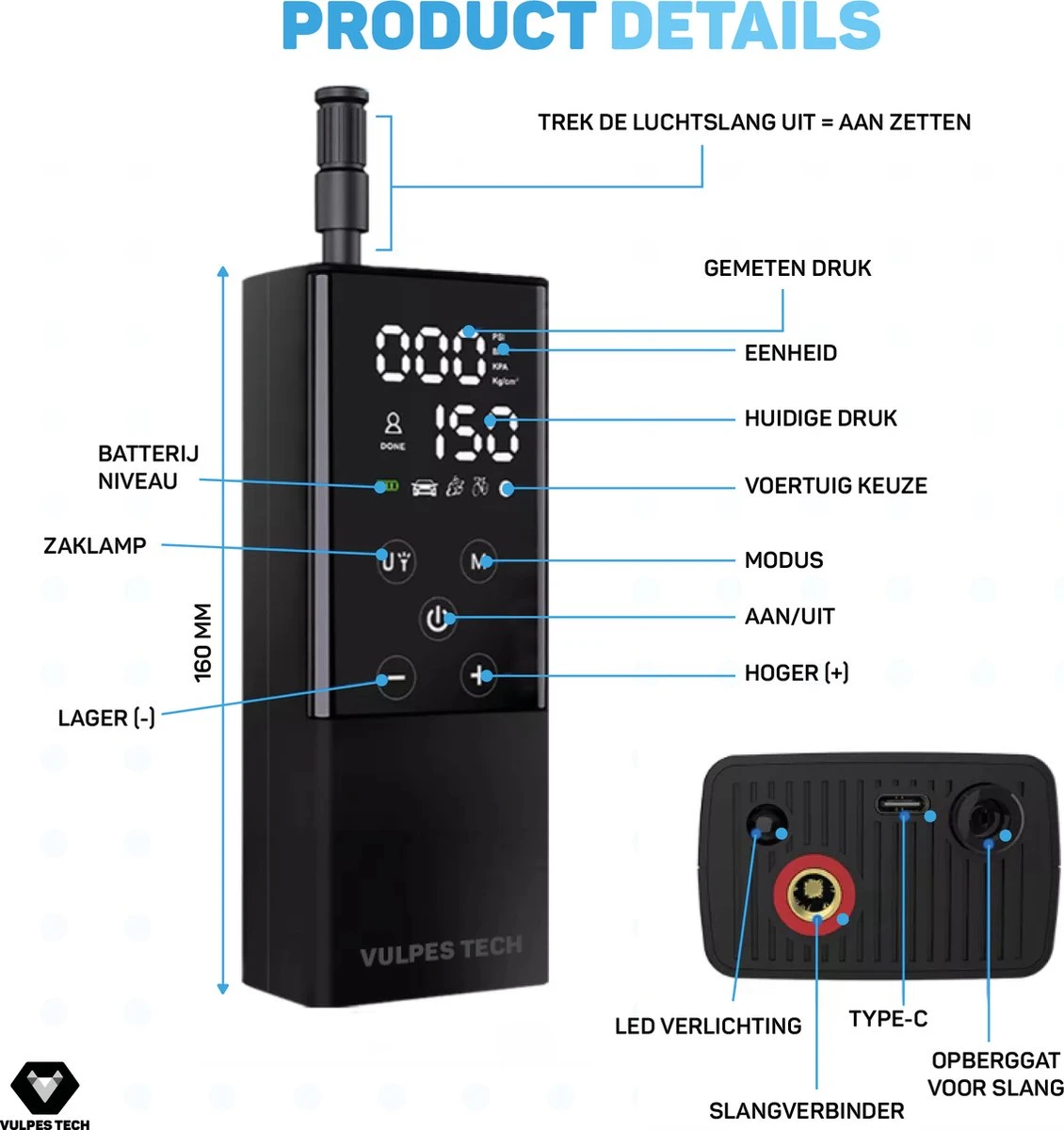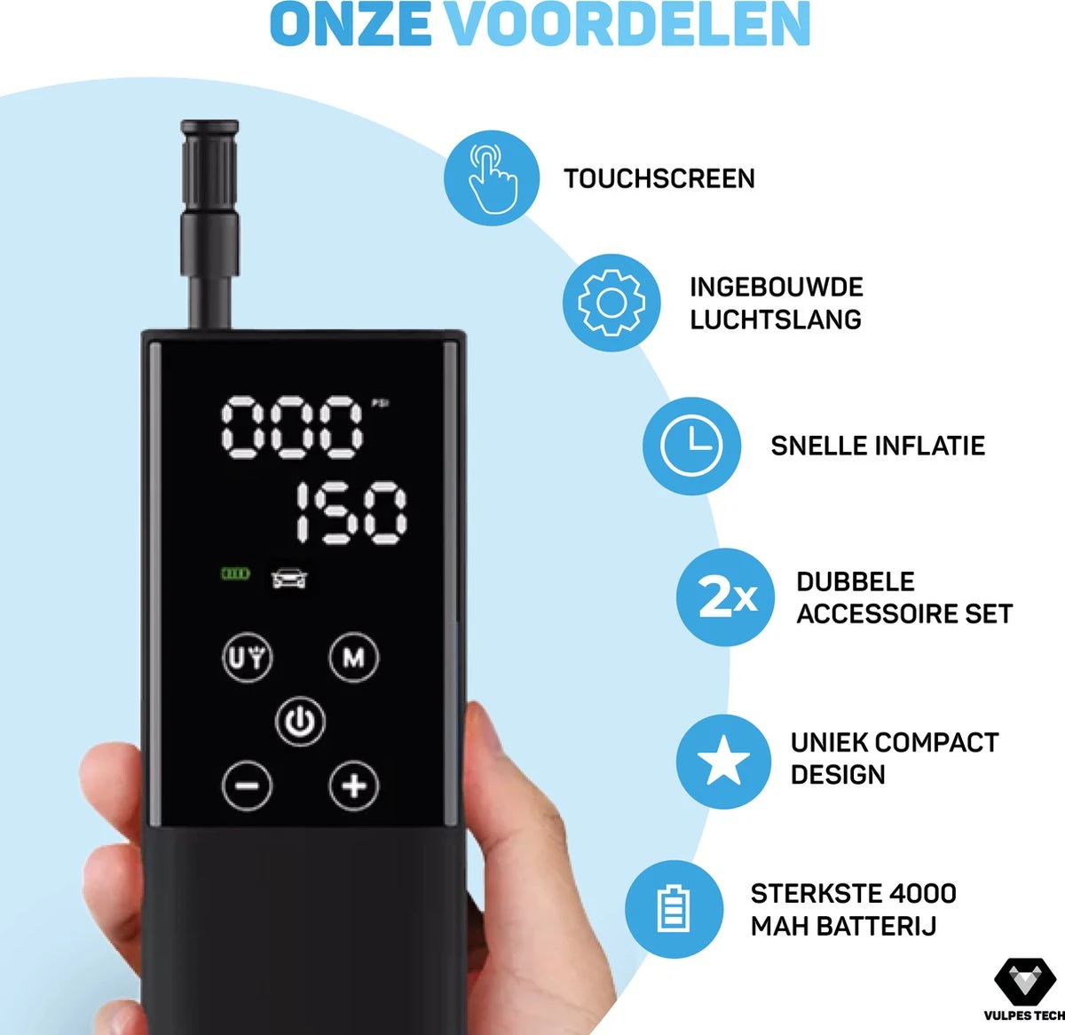 De voordelen van de bandenpomp van Vulpes Tech®:
