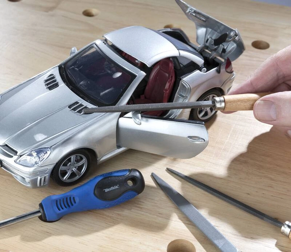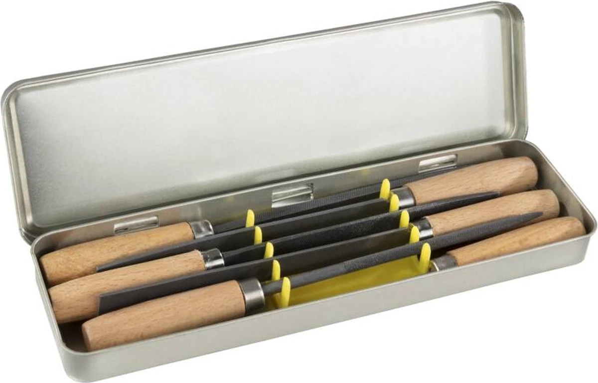 - Hoogwaardige sleutelvijlenset voor metaalbewerking met houten handvat in 100 mm lengte.
