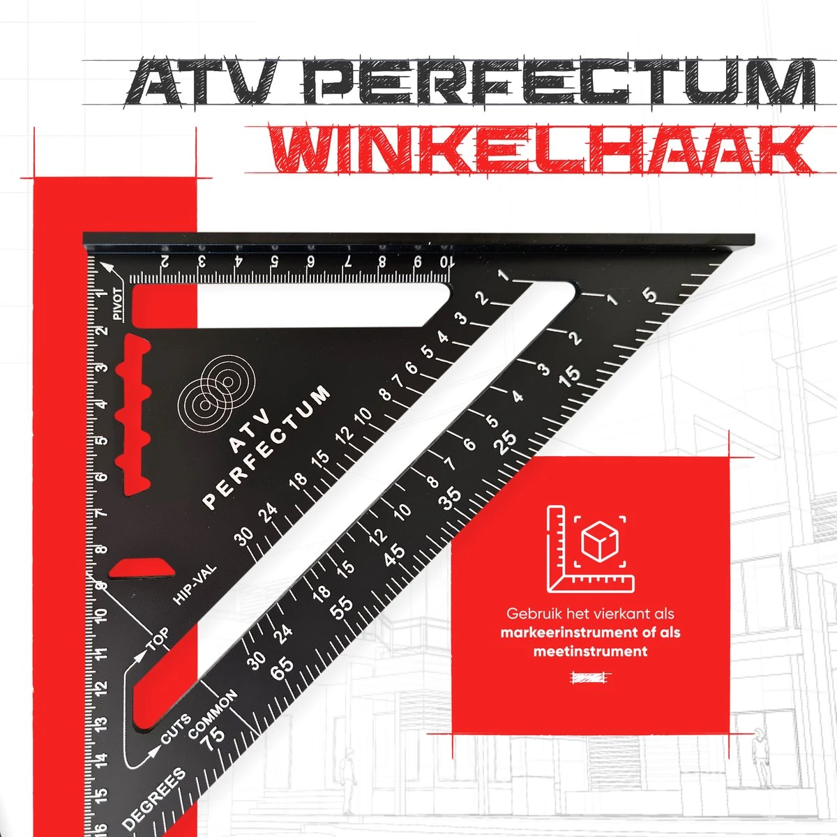 Multifunctioneel inzetbaar – De ATV Perfectum Winkelhaak beschikt over 5 gereedschappen in één.