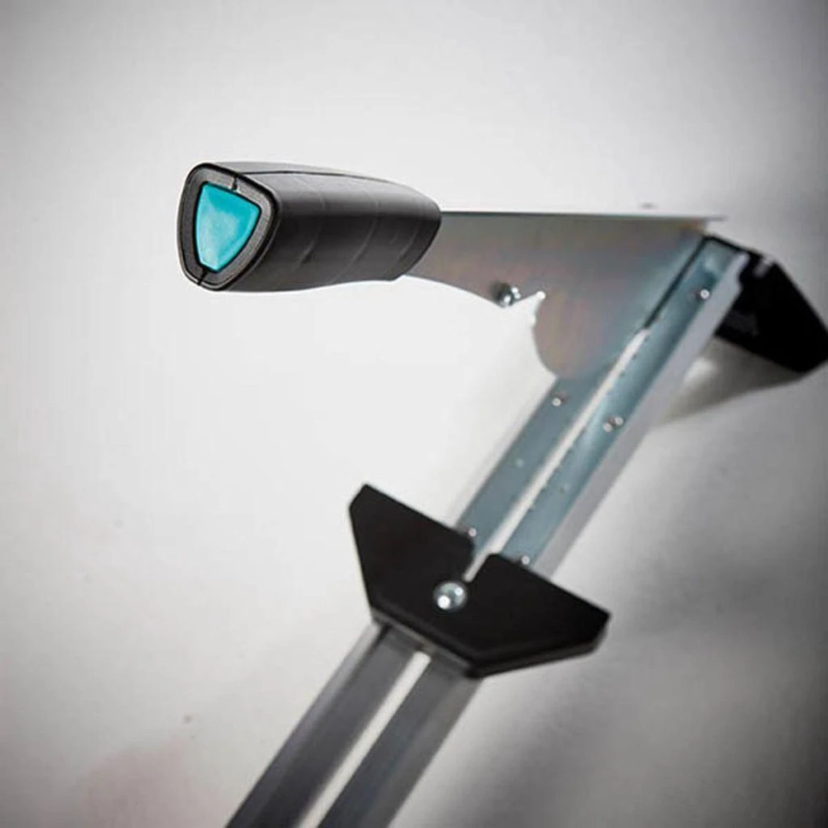 Door de torsiestijve constructie van hoogwaardige aluminium profielen weegt de laminaatsnijder slechts 2 kg en is dus gemakkelijk te vervoeren. Het ideale alternatief voor het werken met kap- of decoupeerzagen.