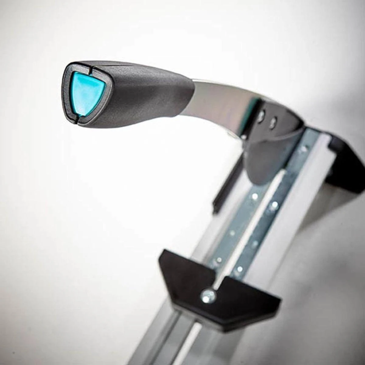 LET OP: Het snijblad van deze laminaatsnijder zo ontwikkeld, dat het laminaat tot 11 mm dik kan snijden zonder toepassing van een gevaarlijk mesblad. Het blad hoort dus niet scherp te zijn.