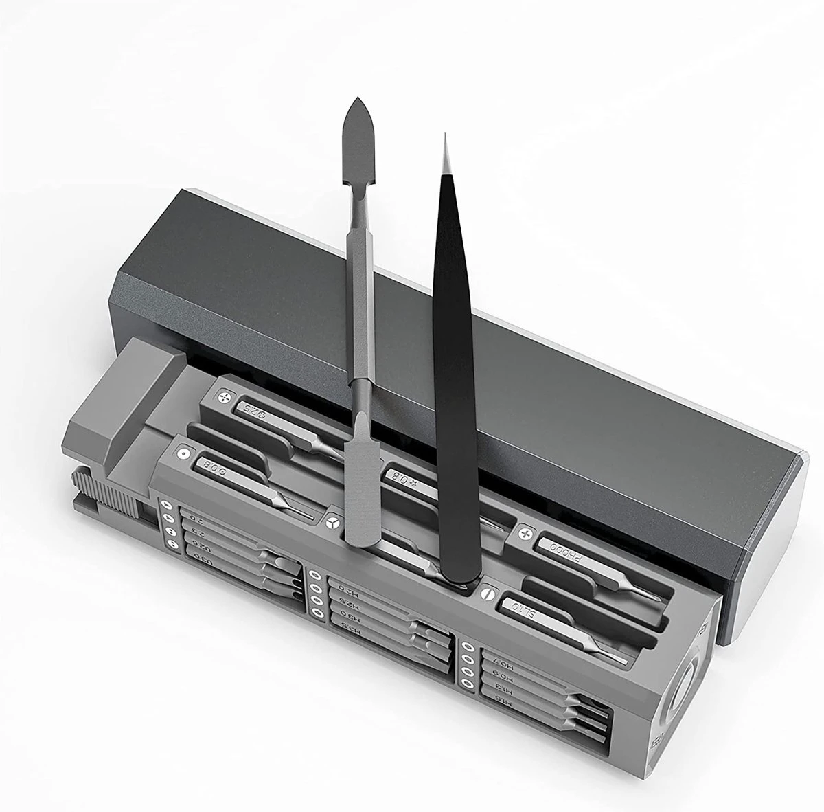 Deze Schroevendraaierset is zeer multifunctioneel te gebruiken dankzij zijn 44-delige inhoud. Speciaal aan deze set uitermate geschikt is voor veel meer elektronische apparaten dan alleen jouw Smartphone! Dankzij zijn sterke kwaliteit is deze Schroevendraaierset perfect inzetbaar bij opening en montage van onder andere Tablets, Computers, Laptops, Nintendo ’s, Xbox, Drones en nog veel meer elektronische apparatuur.