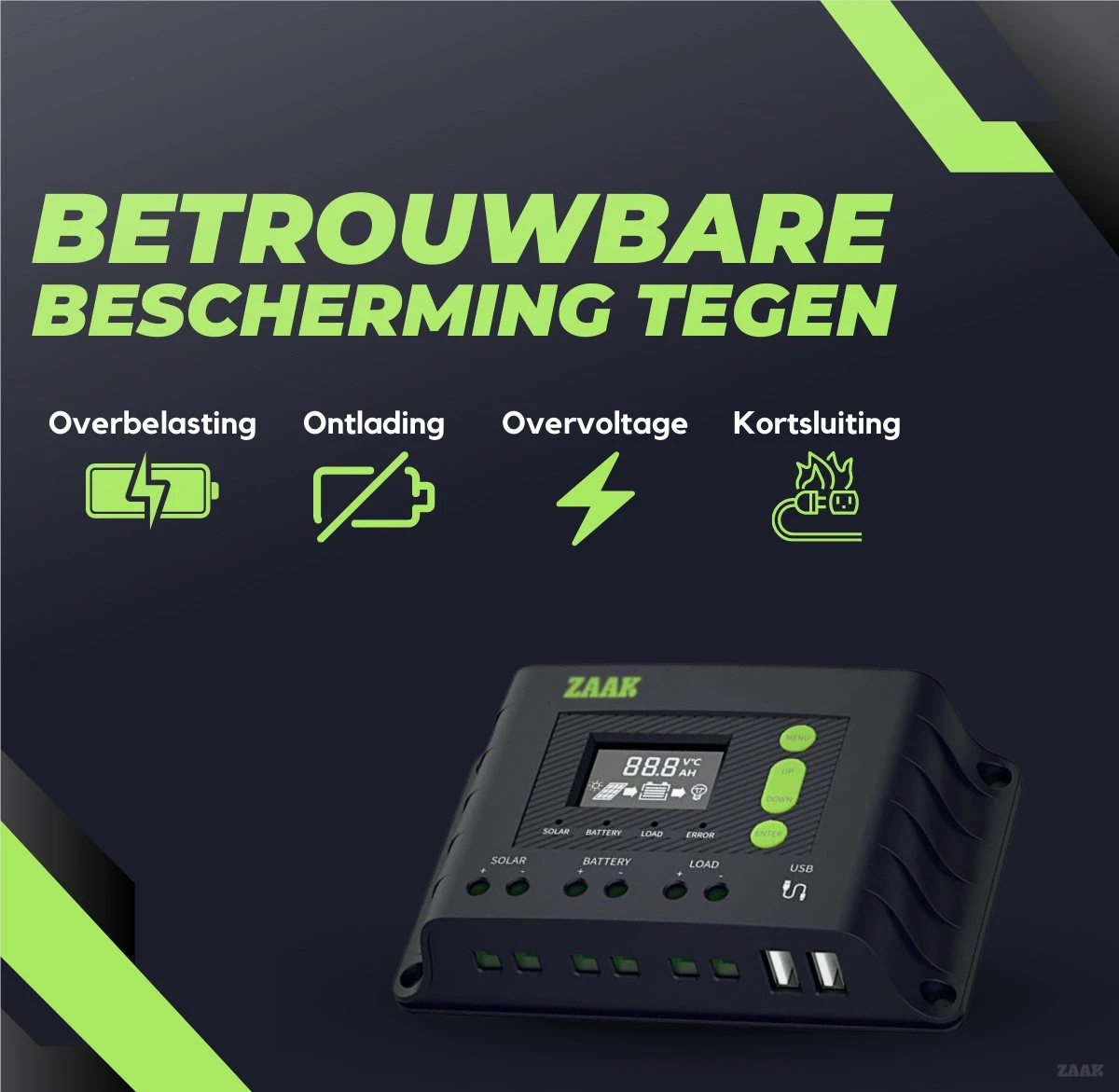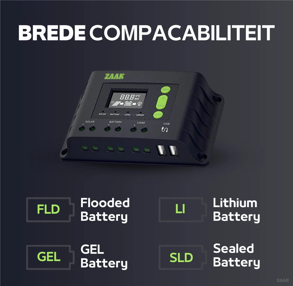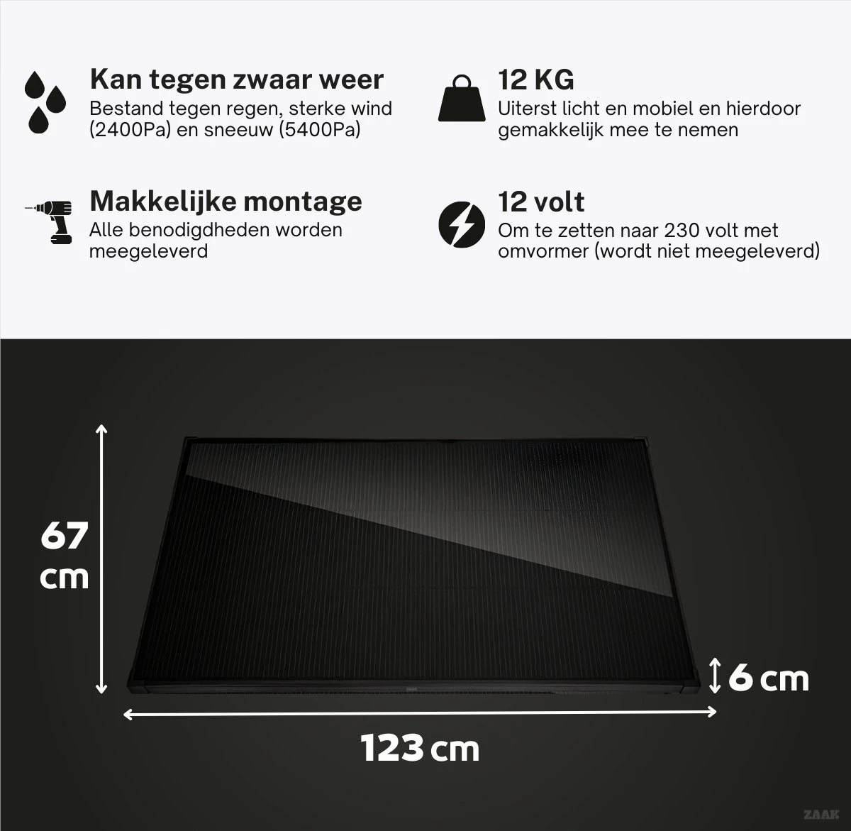 - Inclusief laadregelaar en bekabeling