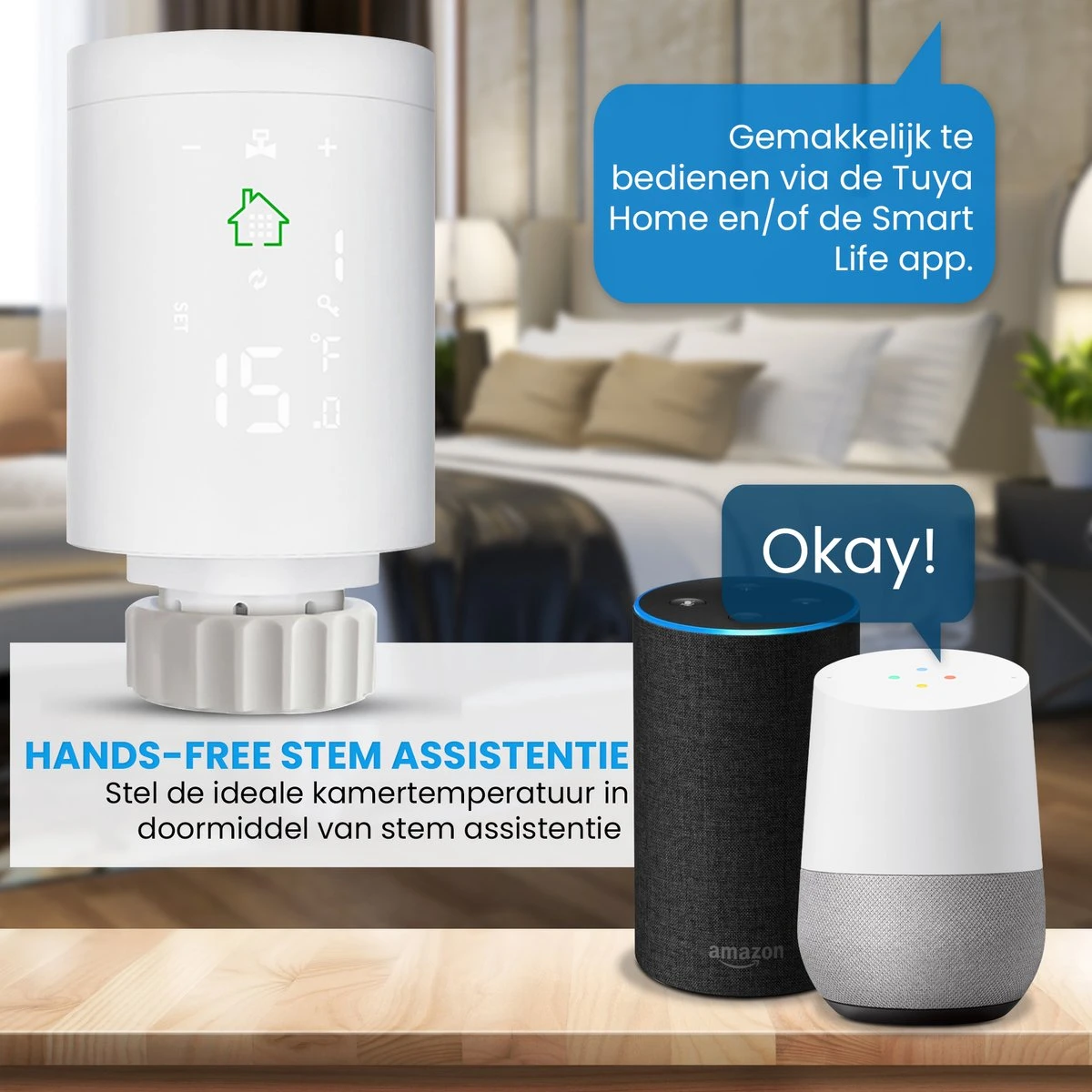 De slimme radiatorknoppen zijn gemakkelijk te bedienen via de Smart Life app. Maak de slimme radiatorknop een deel van je verbonden huis en creëer scenario’s doormiddel van de Smart Life app.