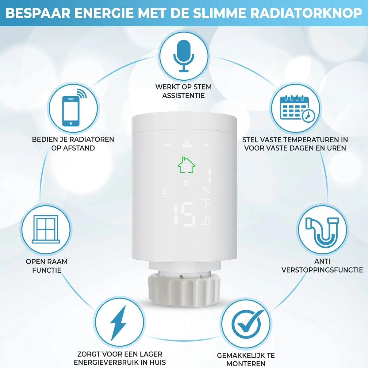 Snel en gemakkelijk te installeren, altijd en vanaf overal volledig automatisch te bedienen. Met deze slimme radiatorknop stel jij je radiatoren snel en gemakkelijk af op je dagelijkse routines!